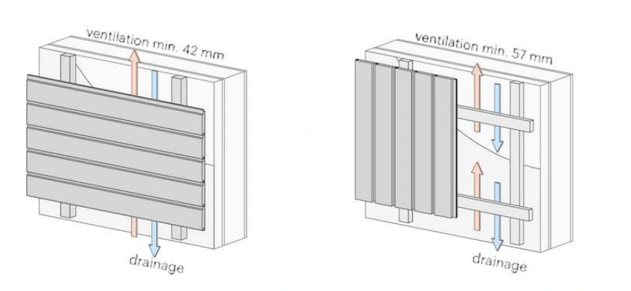 در نصب عمودی باید از زیرسازی دوبل (دو لایه) استفاده شود تا تهویه و زهکشی بهتر انجام گیرد.